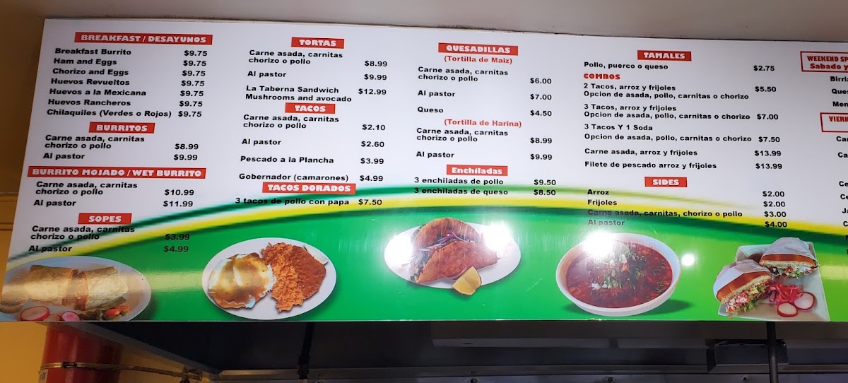 Looking for a taste of authentic Mexican cuisine? Look no further than La Taberna Jalisco Menu. Nestled in the heart of Bellflower, CA, this spot offers a vibrant selection of dishes that bring the bold flavors of Jalisco to your table. Whether you’re craving sizzling fajitas, perfectly seasoned tacos, or a flavorful burrito, there’s something for everyone. Their menu also features fresh seafood options, including shrimp cocktails and fish tacos, perfect for those looking for a lighter option. You can expect every dish to be made with care, using only the finest ingredients. Whether you're grabbing a quick bite or enjoying a leisurely meal with friends, La Taberna Jalisco is a great choice for any occasion. The menu is packed with flavorful dishes, each one offering a taste of the rich Mexican culinary tradition. So, why not indulge in some authentic flavors next time you're in the area?